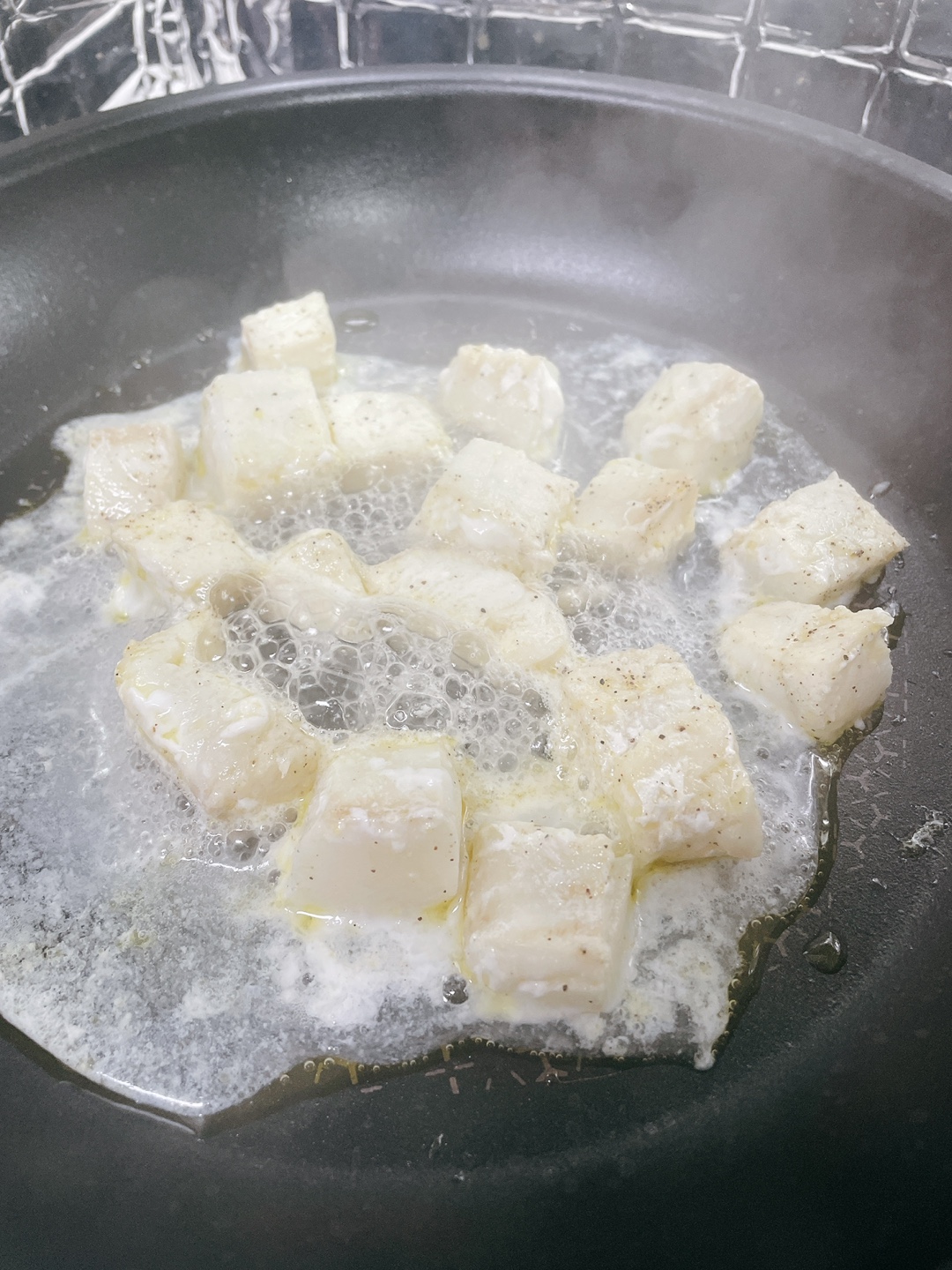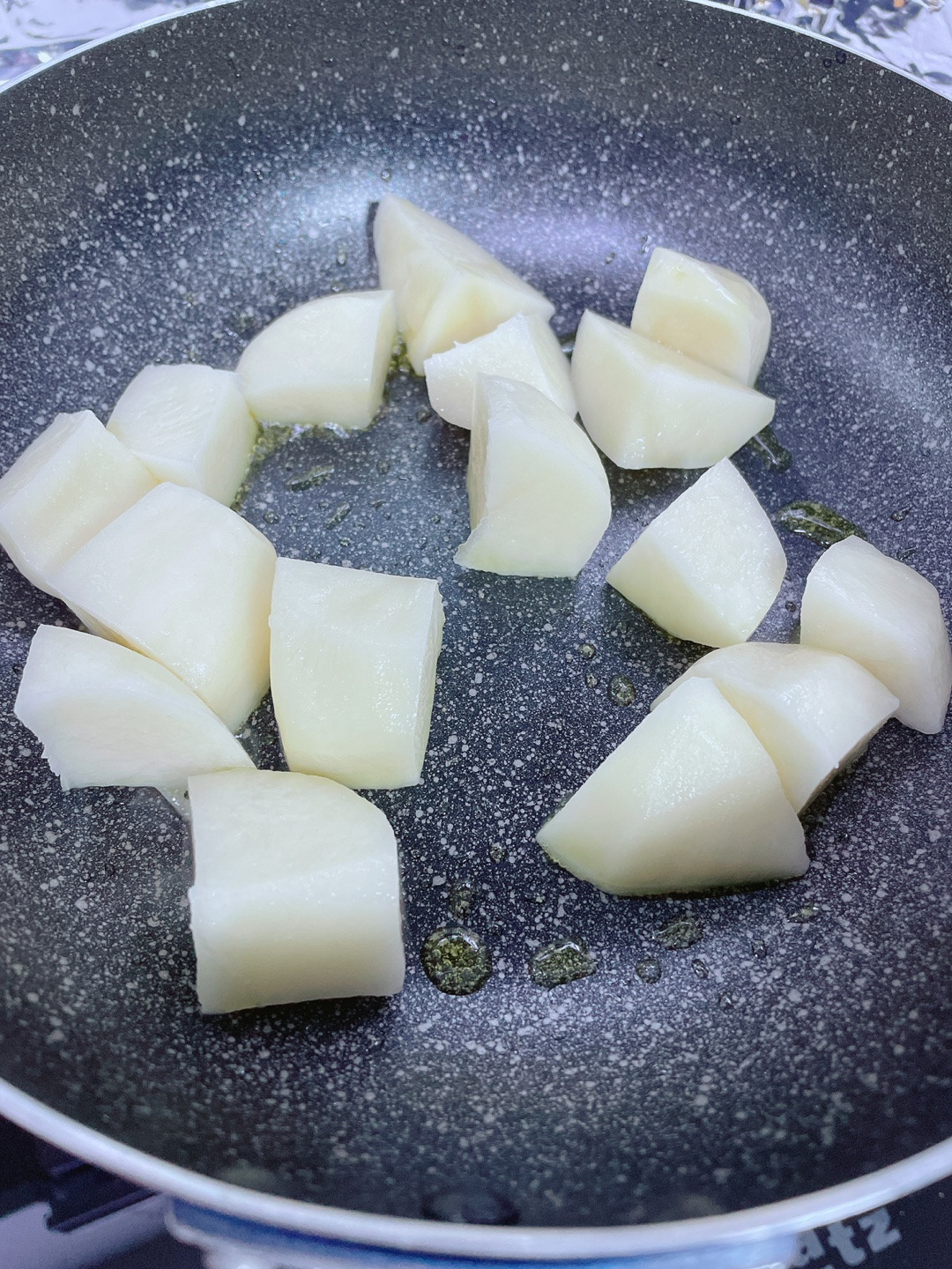 민꼬리닭을 다시 재우는 동안 포포토를 됴각됴각 썰어서 꾸워줍니다.