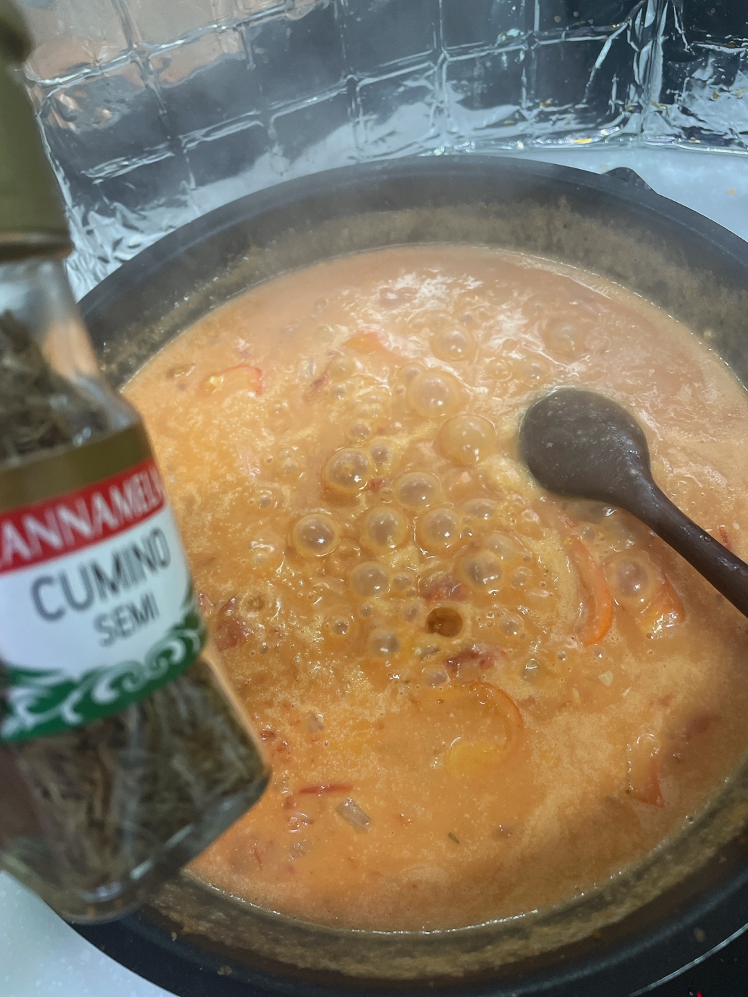 그리고 등화템인 갈색 소두구(큐민으로 추정)을 톡톡 넣어서 다시 낋여요