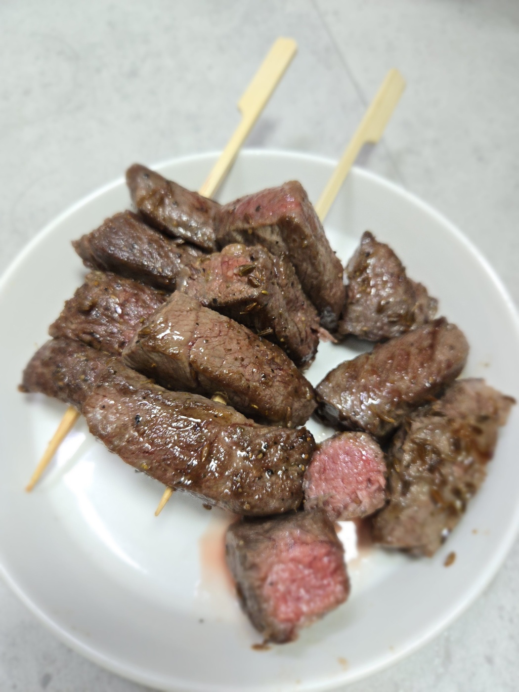 슈하스코를 위해 준비한 꼬치에 쏙쏙 끼워줍니다.