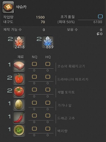 인겜에서의 샥슈카의 재료는 이렇더라구요??