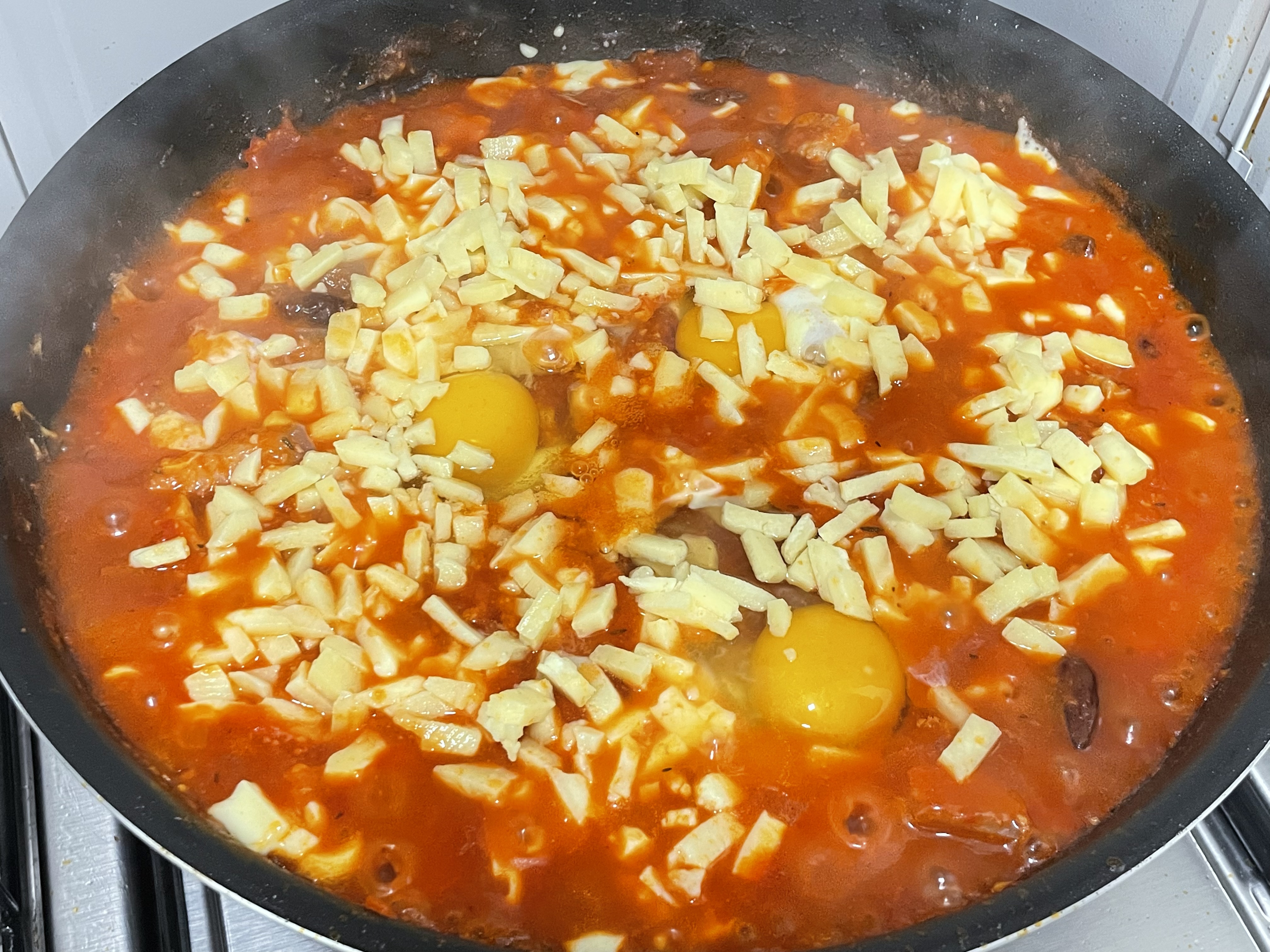 마무리로 계란과 모짜렐라 치즈를 얹어줍니다!
