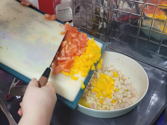 이걸로 함사 가슴살을 먼저 볶아주세요