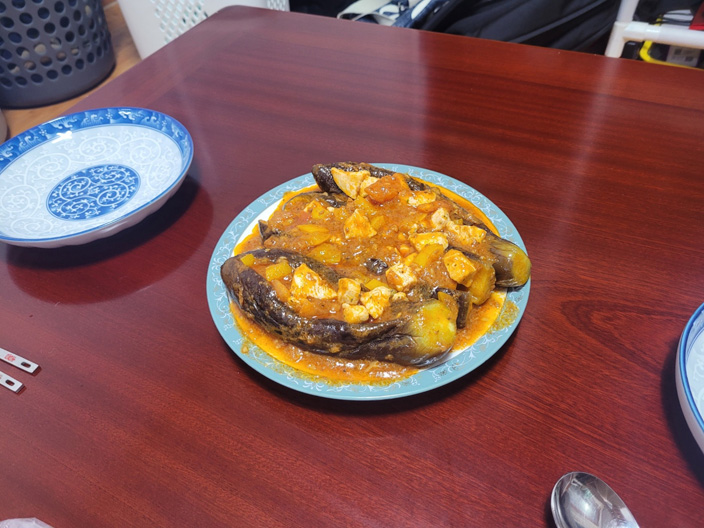 지금 보니까 소스에 절여진 것이 아니라 구운 가지에 구운 야채와 고기를 올려먹는 형식이더라고요
