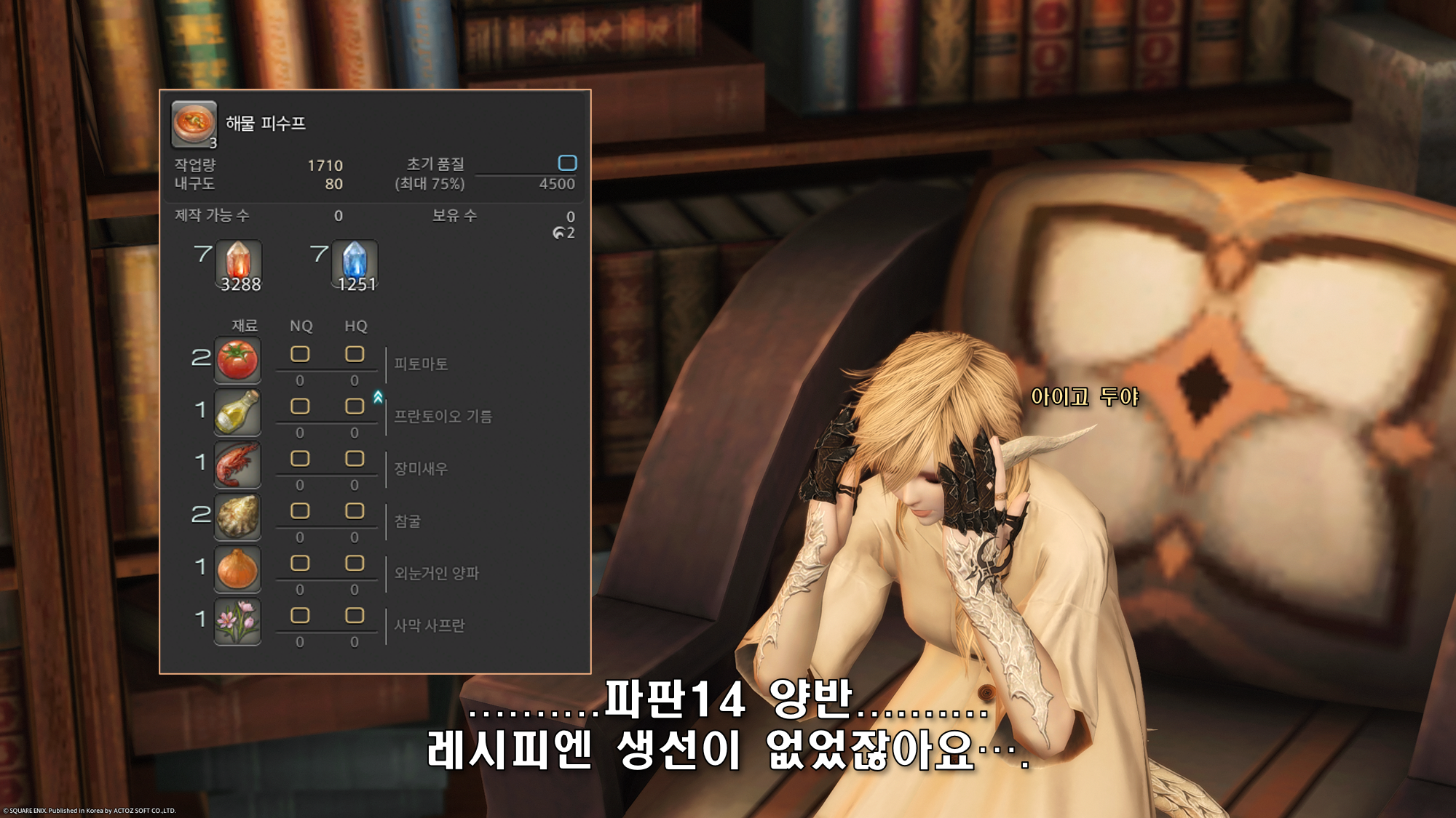 이 글을 보고 저도 소지품에 있는 해물 피수프가 기억이 났습니다.