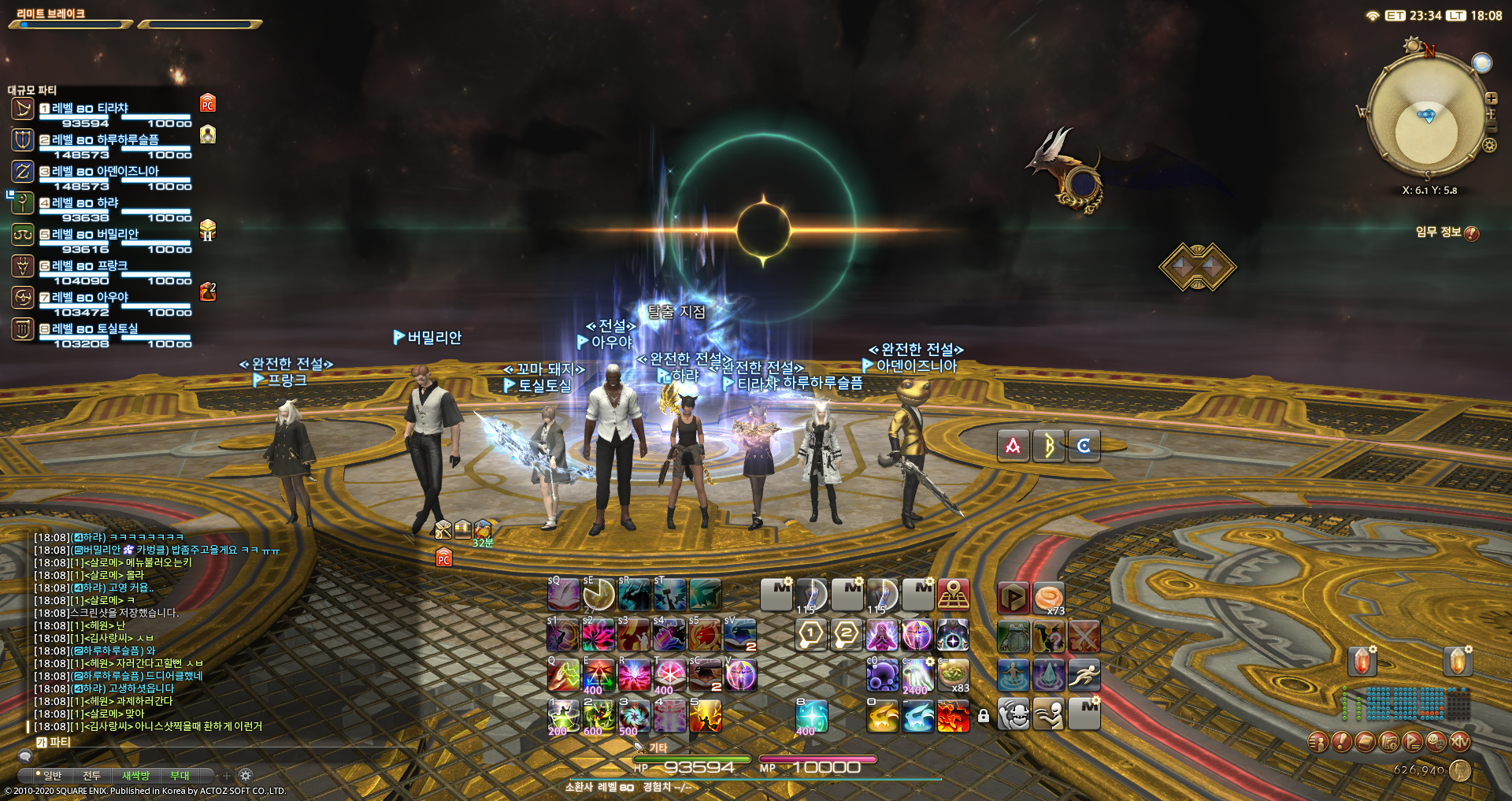 *팀원 전원의 서버 및 캐릭터 명