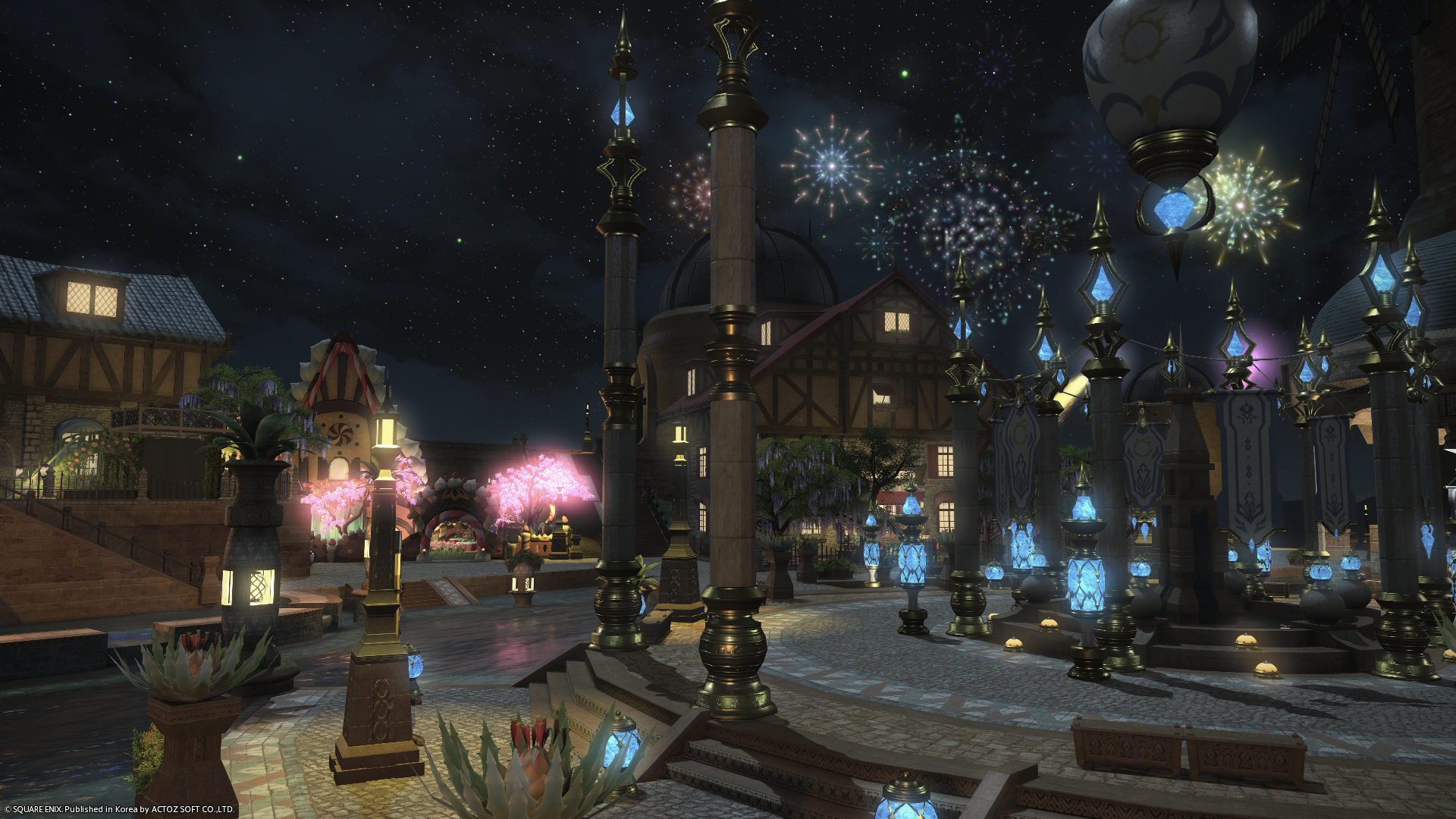 하늘잔 집 지붕에서 본 밤하늘과 집앞 광장에서 보는 불꽃놀이