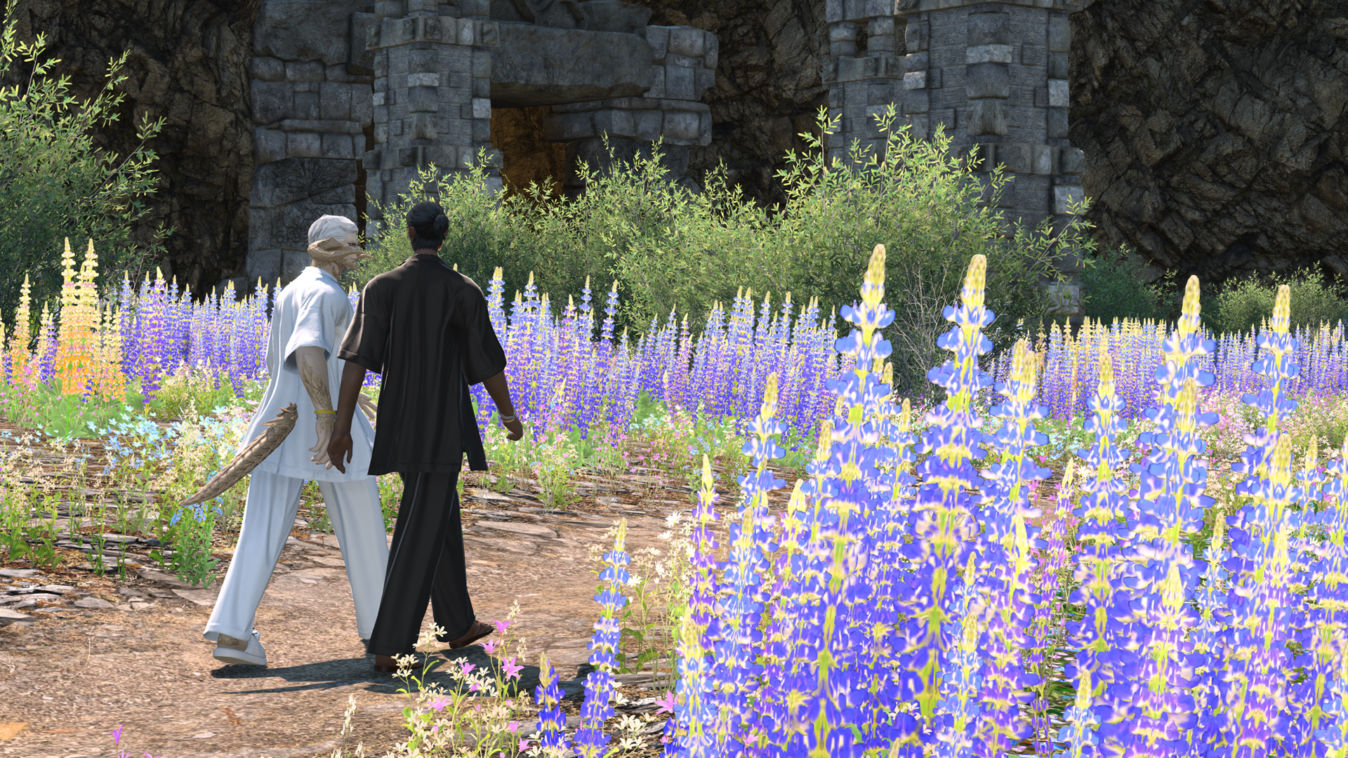 저와 친구는 보라색과 노란색을 특히 좋아하는데, 메인 퀘스트를 함께 진행하며 만난 이 꽃밭에는