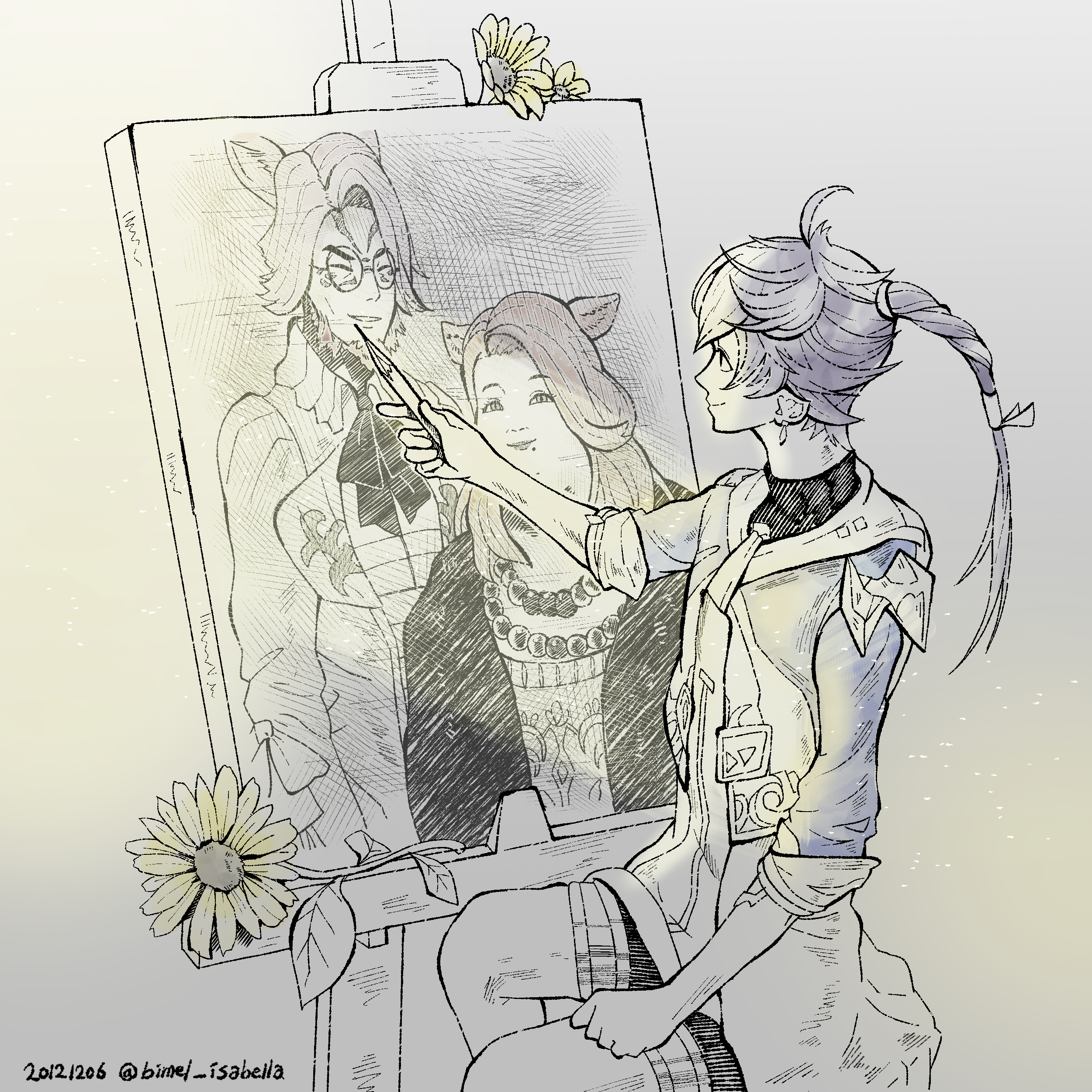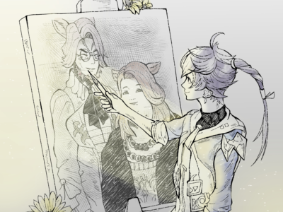 한번 본 인물은 머리속에서 잊지 않고 기억해서 그림으로 묘사 수 있다는 알피노의 재능, 홍련의 tmi(유우기리랑 고우세츠 찾는다고 몽타주 그릴때)를 보고 인상 깊어서 그린 팬아트..