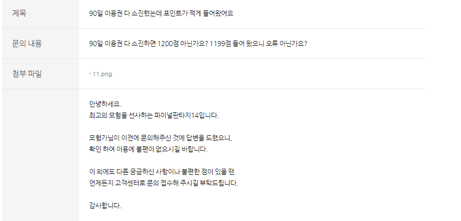90일 이용권 쓰면 1200점 들어와야 되는데 지들 시스템 문제로 1점 덜 들어온걸 사용자 귀책사유로 두는건 뭔경우여
