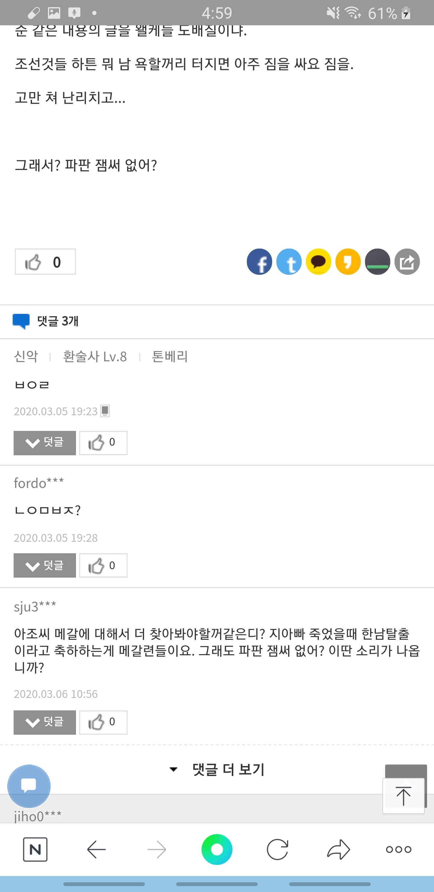 이러다 일베나 꼴페미나 가조쿠나 거기서 거기같아 보일지경임