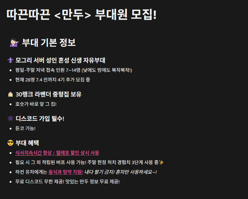| 78755 | [모그리] 자유부대 ≪파도≫에서 함께할 부대원을 모집합니다! (0) 쩡글 | 25-11-18 | 273 | 0 |