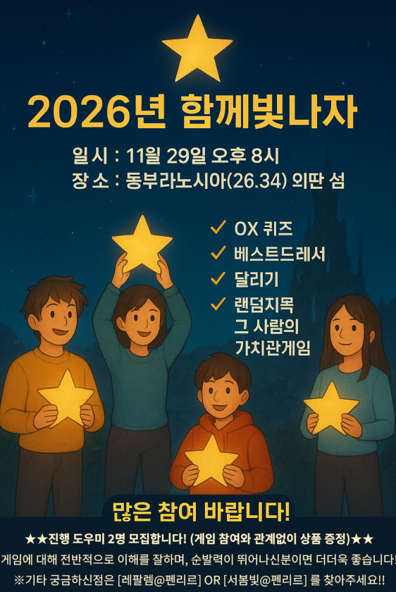 | 78761 | [모그리] 자유부대 ≪파도≫에서 함께할 부대원을 모집합니다! (0) 쩡글 | 25-11-24 | 168 | 0 |