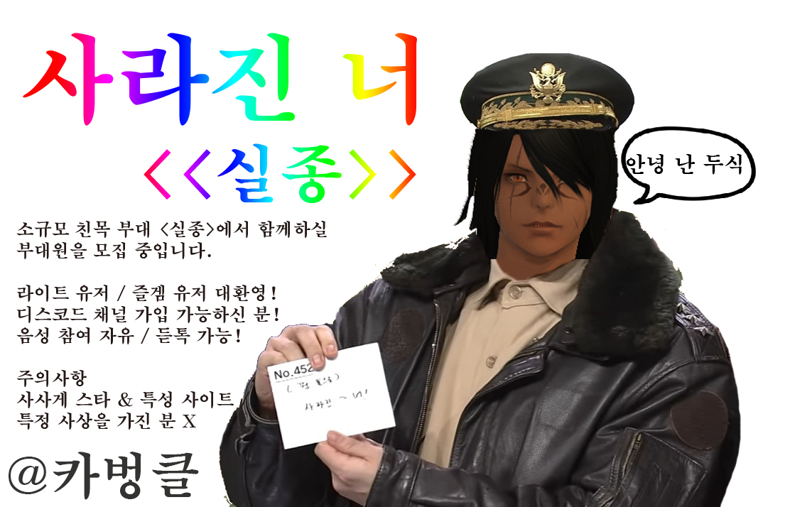 인게임 가입 문의 _ 드내@카벙클 / 양분@카벙클 / 김두식''@카벙클