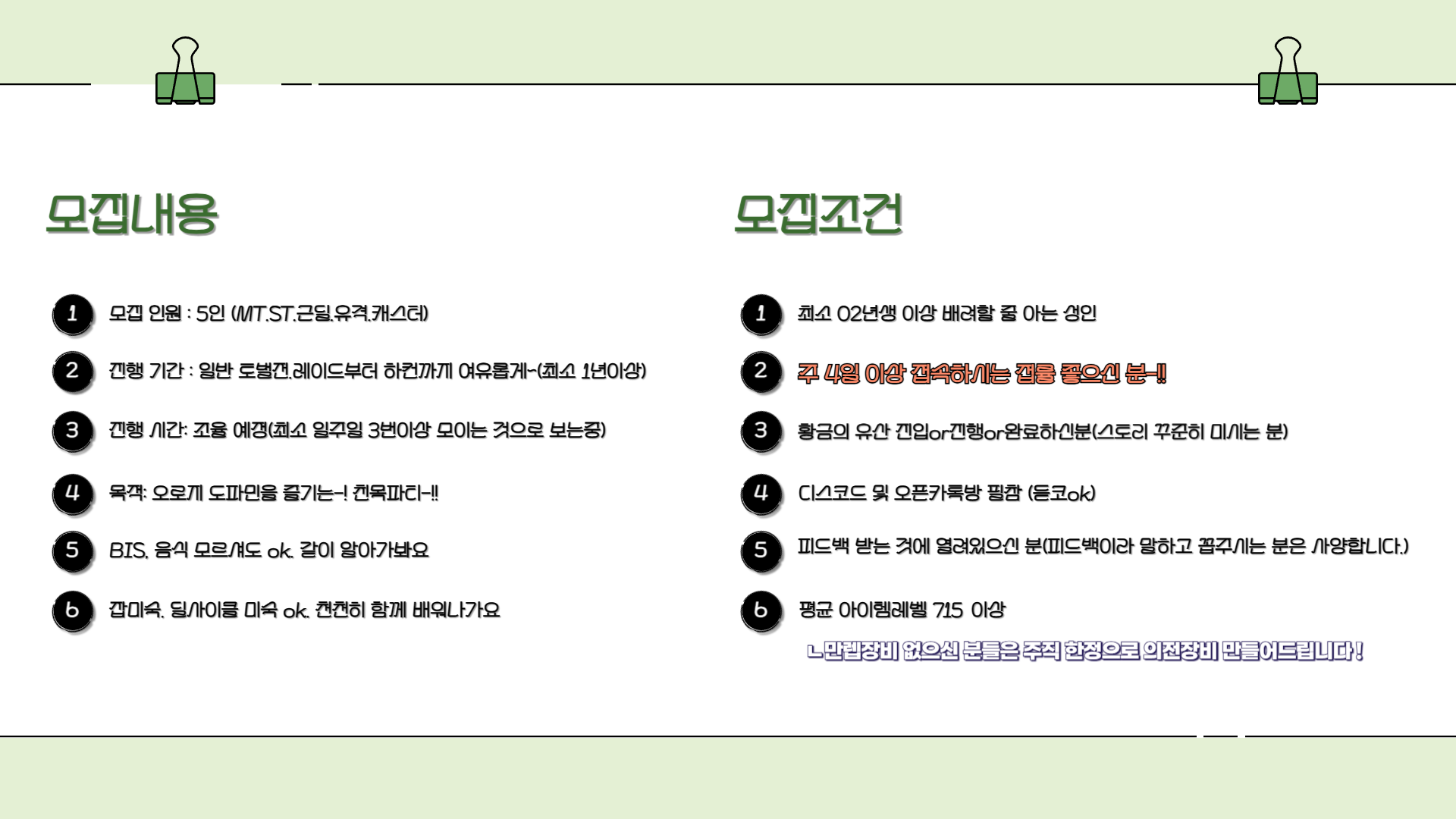 | 20731 | 우리만의 최초를 완성할 8인 헤딩 [전 구간 정주행] 공대원 모집 (0) 초읽기 | 25-10-31 | 904 | 0 |