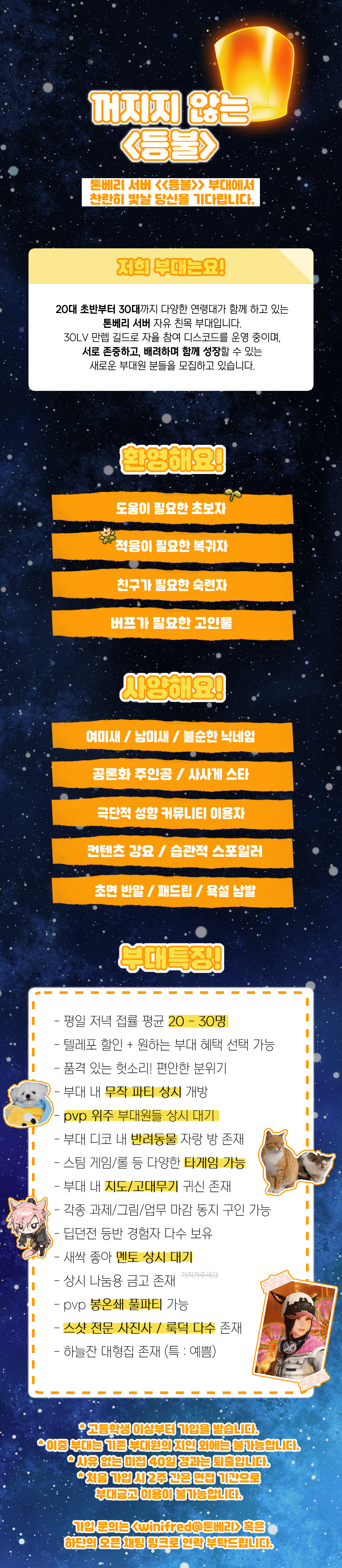 [톤베리] 꺼지지않는 <등불>에서 부대원을 모집합니다