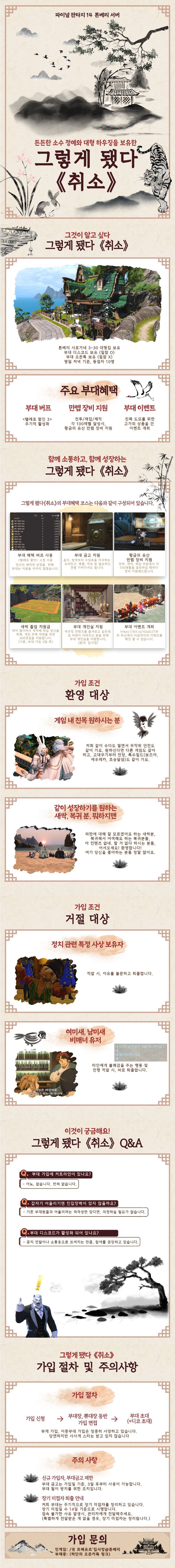 | 21160 | 펜리르!!!! 별빛아래모이다 이음에서 부대원모집합니다!!!! (1) Picture 반란드 | 26-01-17 | 593 | 0 |