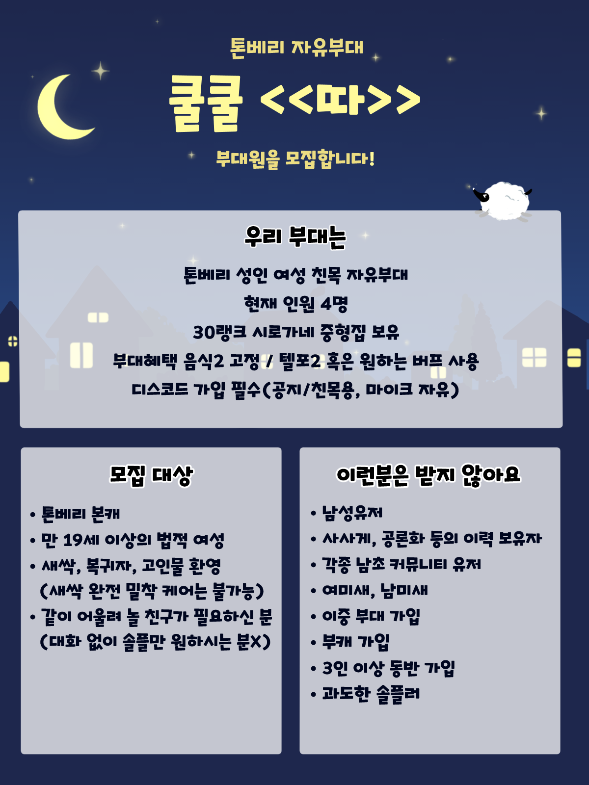 [톤베리] 성인 여성 자유부대 쿨쿨<<따>>에서 부대원을 모집합니다!