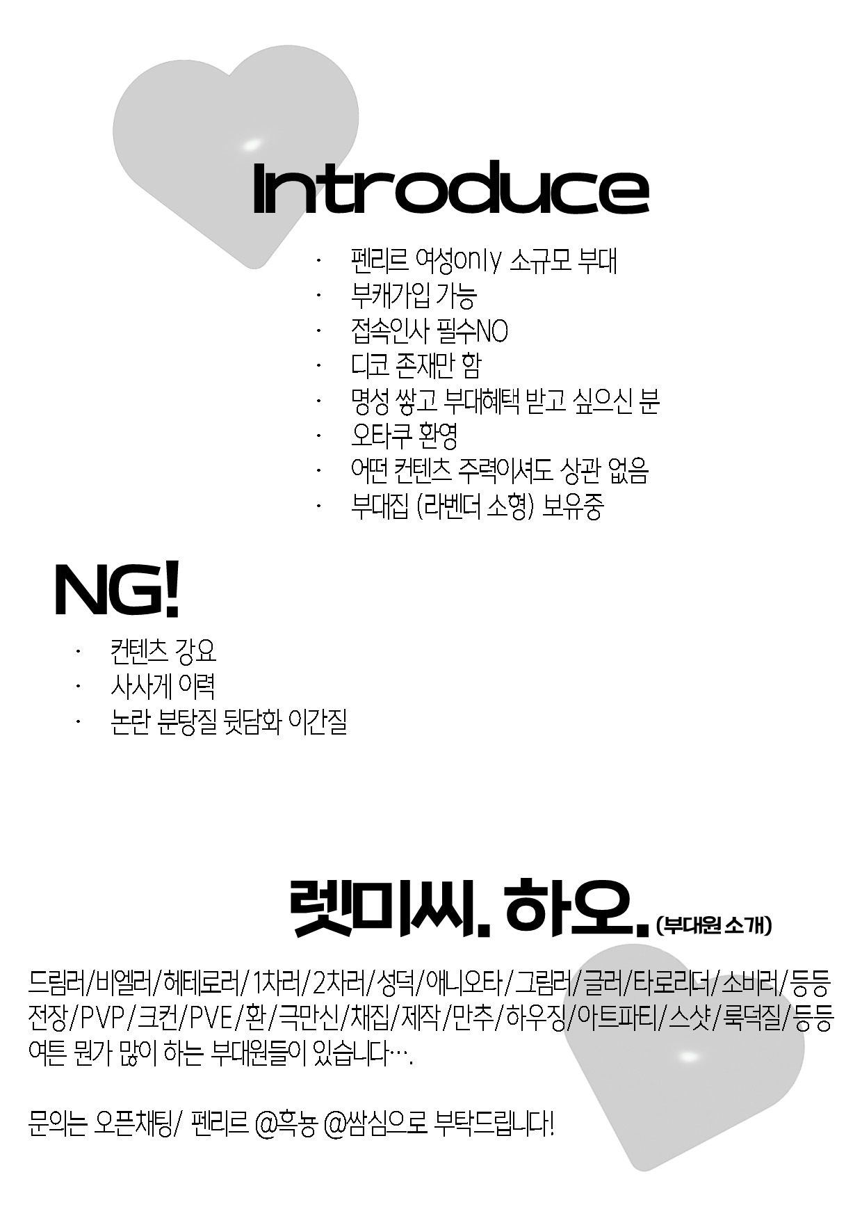 | 21575 | [펜리르] <<편안>>부대 부대원 모집중입니다~ (2) Picture 페넬 | 26-04-05 | 509 | 0 |