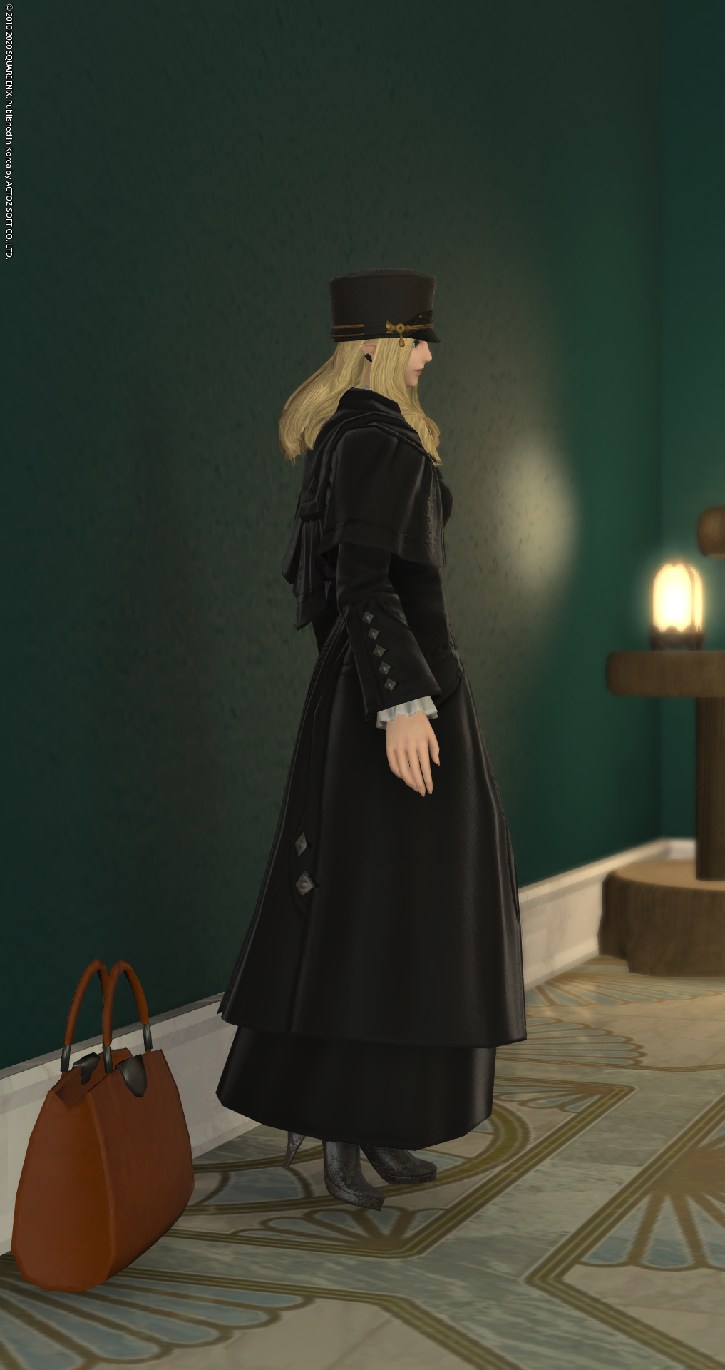 스칼라 마술사 모자 (숯검정색) / 신학생 외투 (숯검정색) / 인조 손톱 / 긴치마 (칠흑색) / 2호 B형 장화