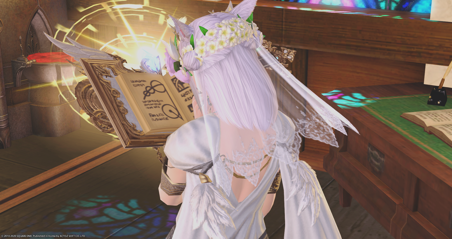 ★ 상세 설명: 겨드랑이는 물론 귀와 손에 든 책, 발목에까지 날개를 달고 있습니다. 면사포 대신 에덴의 은총 치유사 머리사슬을 끼면 머리카락에도 깃털을 꽂고 다닐 수 있습니다.