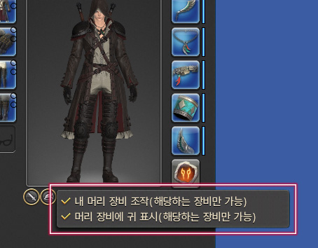 비에라족의 일부 머리 장비에서 귀 표시/비표시 설정을 할 수 있게 됩니다.