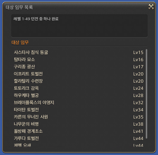 | 주요 퀘스트 '어둠 속의 부름' 완료 |
